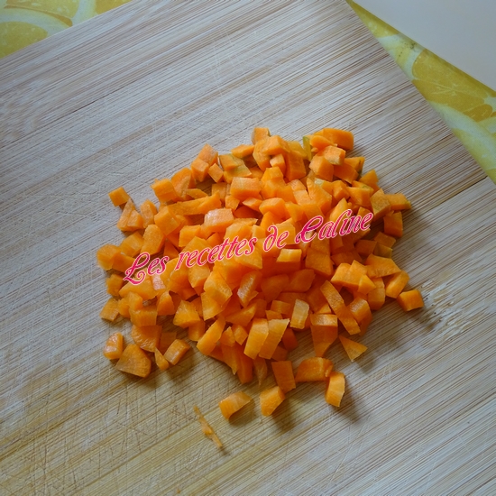 Epluchez et coupez la carotte en petits dés ainsi que la tomate.
