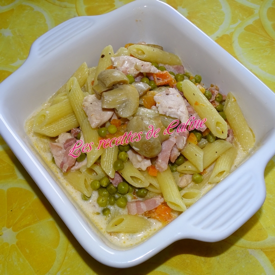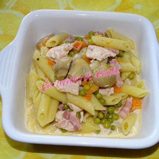 Ajoutez les pâtes, les champignons et chauffez encore 2 min.