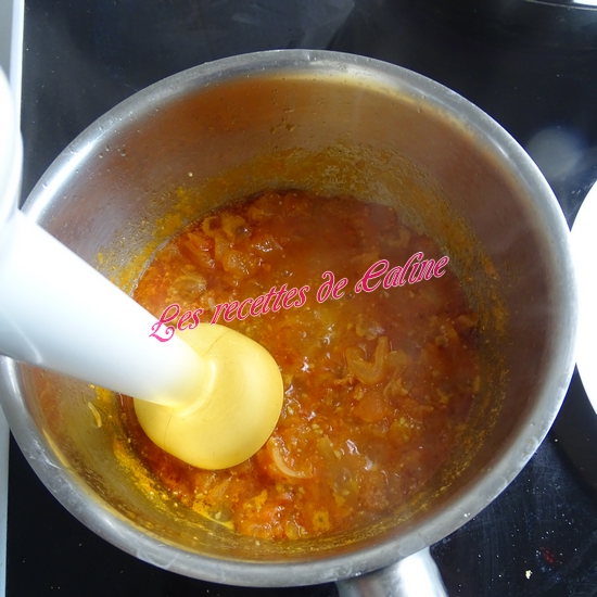 Laissez cuire 30 minutes à feu doux, à découvert, en remuant de temps en temps. Ajoutez enfin le morceau de sucre. Assaisonnez et mélangez de nouveau afin que le sucre fonde. Mixez la sauce.