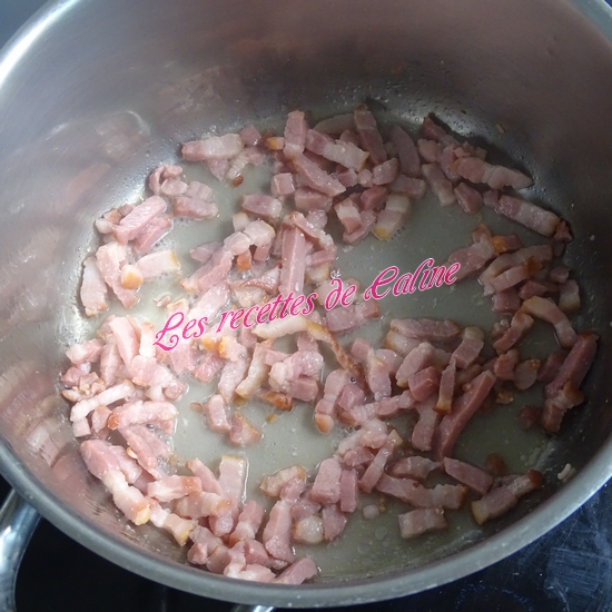 Dans une sauteuse, faites dorer les lardons sans ajouter de matière grasse pendant 5 min.