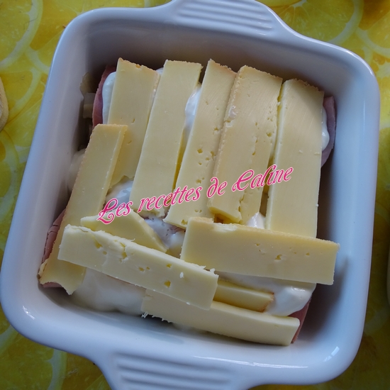 Disposez le fromage à Raclette (pour ma part, j’ai coupé les tranches de fromage en 2) sur les endives au jambon.