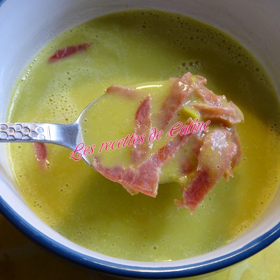 Versez dans des assiettes creuses ou bol et déposez par dessus des brisures de bacon
