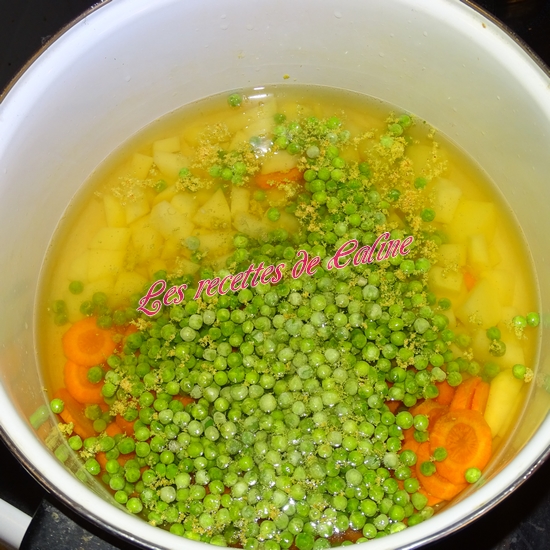 Dans une cocotte contenant 1 L d’eau, faites cuire les légumes avec les 2 cubes de bouillon 40 minutes.