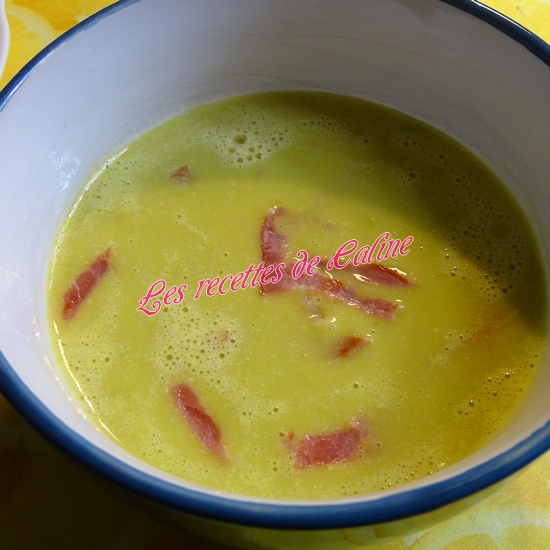 Versez dans des assiettes creuses ou bol et déposez par dessus des brisures de bacon