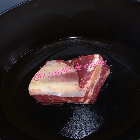 Faites chauffer 2 cuil à soupe d’huile d’olive dans une grande cocotte en fonte puis faites dorer la viande sur toutes les faces.