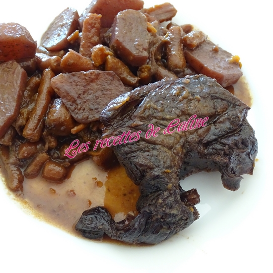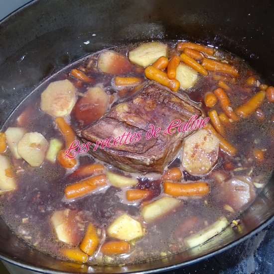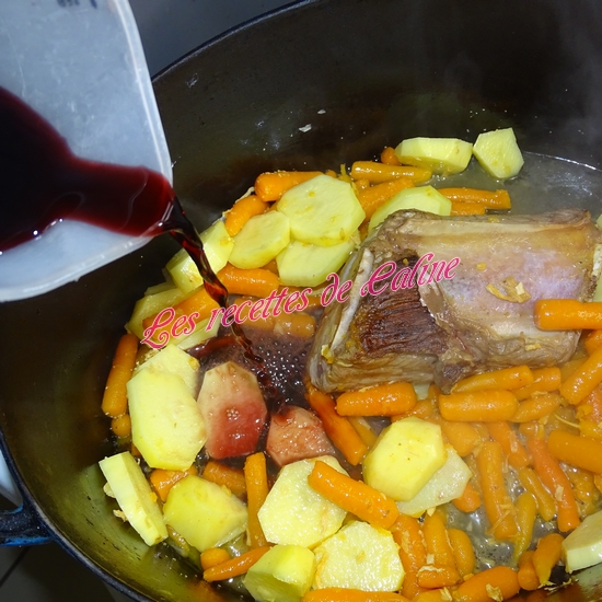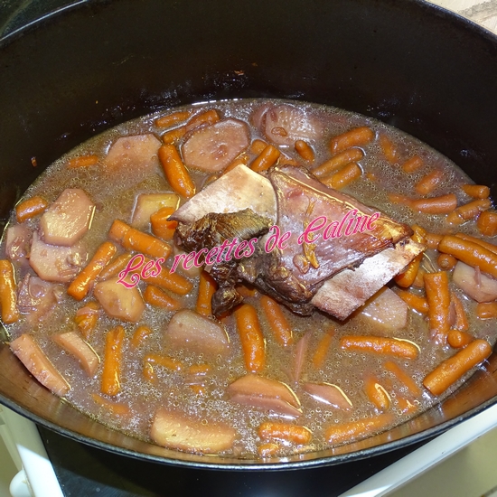 Couvrez votre cocotte en fonte et mettez à cuire au four pendant 3 h environ à 180°C, jusqu’à ce que la viande soit très tendre et se détache facilement de l’os.
