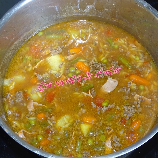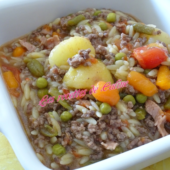 Pour la cuisson des risetti, je l’ai fait en deux fois, c’est a dire que ce plat est pour 4 personnes et chez nous, nous sommes que 2, du coup une fois la cuisson des légumes et viande faites, j’ai divisé ma cocotte en 2 comme ça, sa évite que les risetti forme de la colle pour le lendemain