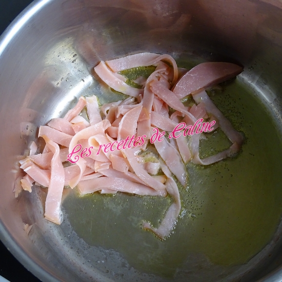 Dans une grande poêle ou wok, faites revenir le bacon et l’oignon pendant 2 à 3 minutes à feu moyen.