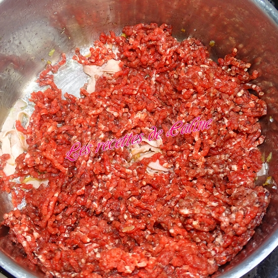 Ajoutez le boeuf haché et les légumes. Cuire 5 min en remuant, jusqu’à ce que la viande ait perdu sa teinte rosée.