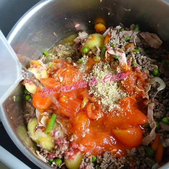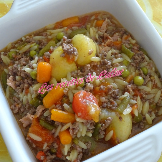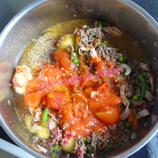 Pour la cuisson des risetti, je l’ai fait en deux fois, c’est a dire que ce plat est pour 4 personnes et chez nous, nous sommes que 2, du coup une fois la cuisson des légumes et viande faites, j’ai divisé ma cocotte en 2 comme ça, sa évite que les risetti forme de la colle pour le lendemain
