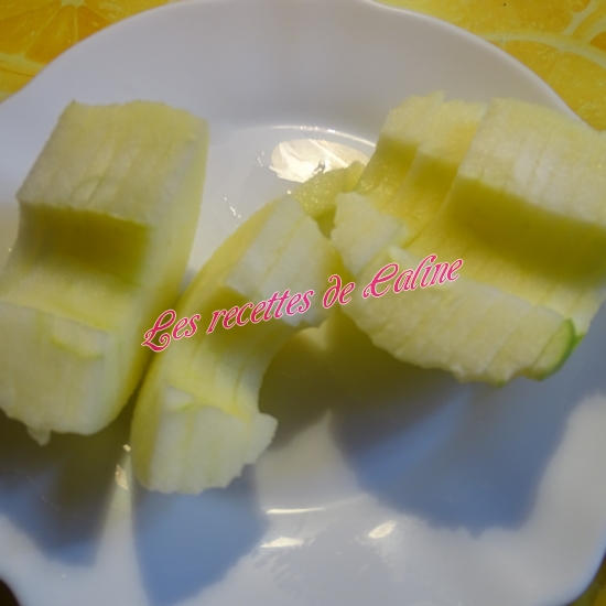 Lavez la pomme. Epluchez-la, et retirez le trognon. Coupez-les quartiers, puis en lamelles. Citronnez-les légèrement pour éviter toute oxydation.