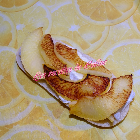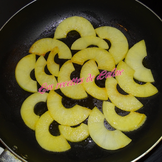 Mettre un peu de beurre dans une poêle et faites caraméliser les lamelles de pommes