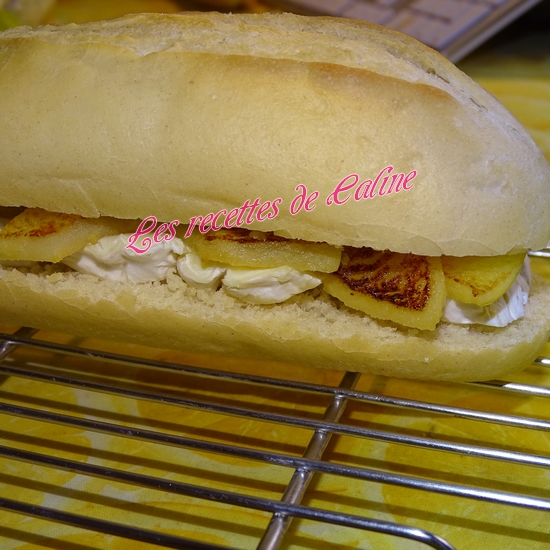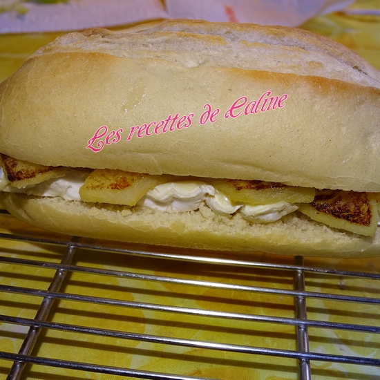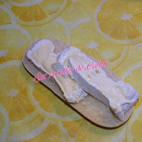 Ouvrez vos mini-baguettes dans la longueur. et disposez-y 2 belles lamelles de camembert, et des lamelles de pommes