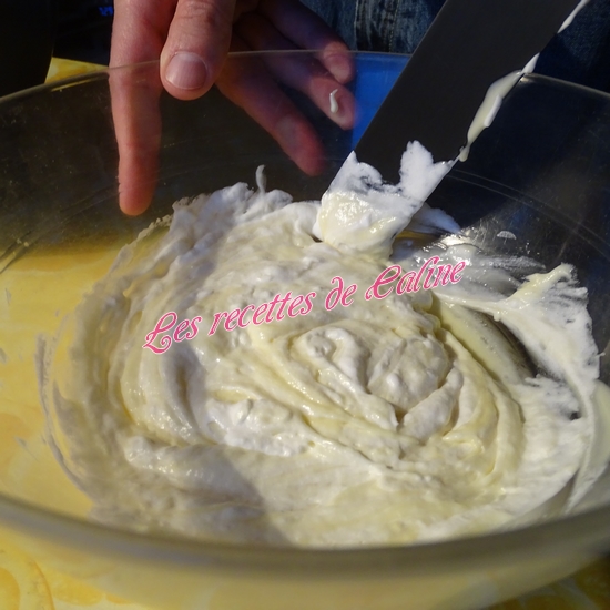 Placez votre crème liquide bien froide dans le saladier bien froid et montez la crème jusqu’à ce qu’elle commence a épaissir (mais pas en total chantilly), attention de ne pas trancher cette crème Petite astuce ; de façon que ma crème monte au plus vite, je mets sur vitesse rapide dès le départ).