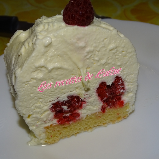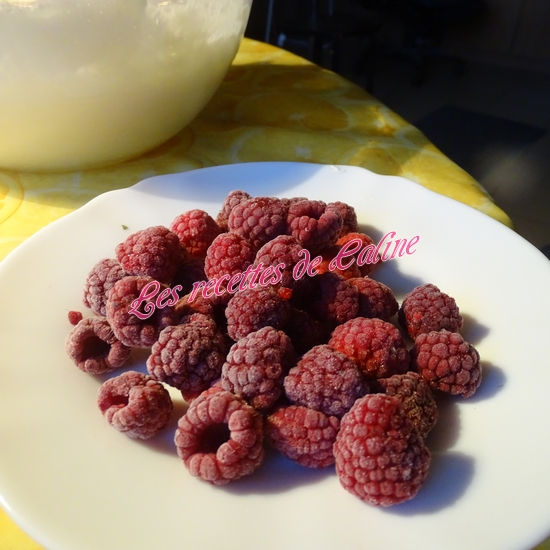 Placez 2 rangés de framboises(oui j’en ai mis un peu plus) sans les enfoncer, puis recouvrir avec de la mousse sans appuyer.