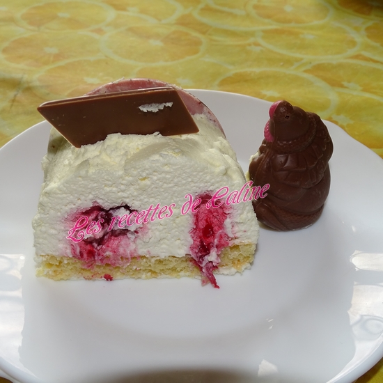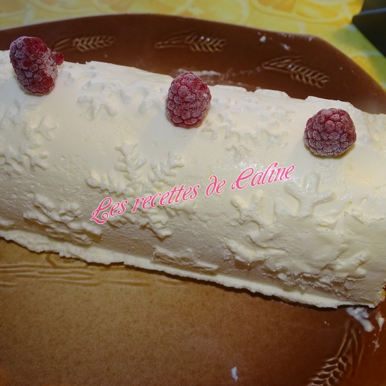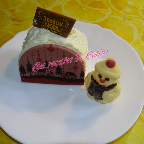 Décorez votre bûche à votre guise (bombe de velours de couleur, petits personnage, champignons meringue etc…..)pour la déco avec les framboises, j’avais testé la recette en septembre et celle avec les petites déco de noêl c’est celle qu’on a fait pour noël et pour le jour de l’an