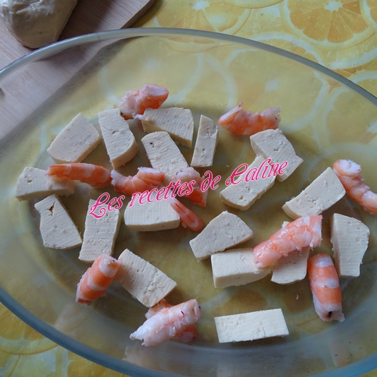 Placez les moules, crevettes et quenelles dans un plat allant au four, mélangez délicatement.
