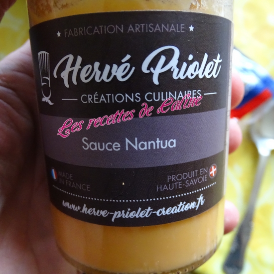 Versez la sauce Nantua dans le plat.(Pour ne rien perdre de la sauce, j’ai versez un peu de crème liquide dans le pot, bien remuer et versez dans le plat)