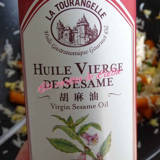Éteindre le feu, puis ajoutez la sauce soja et l’huile de sésame.