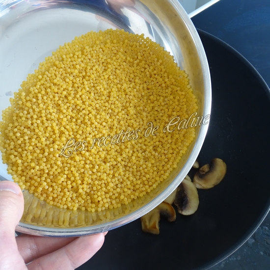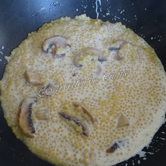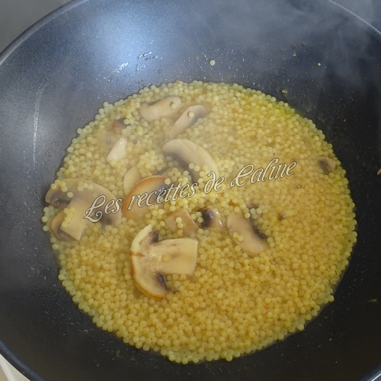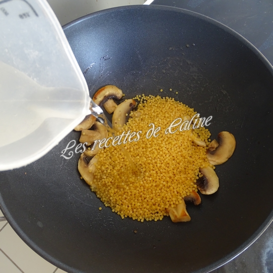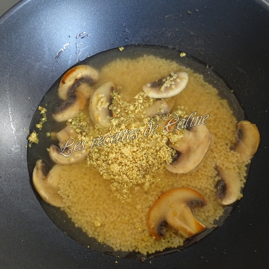Ajoutez les perles de blé, 300 ml d’eau et le cube de bouillon.