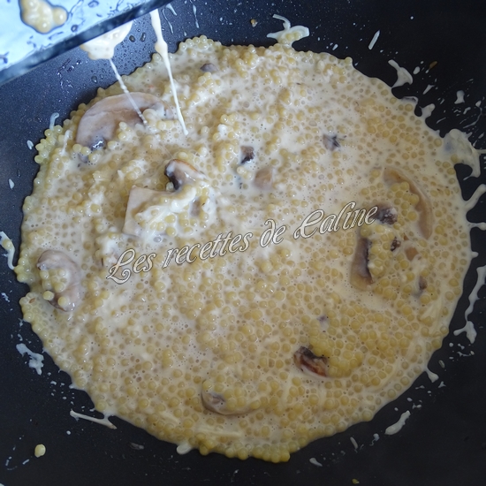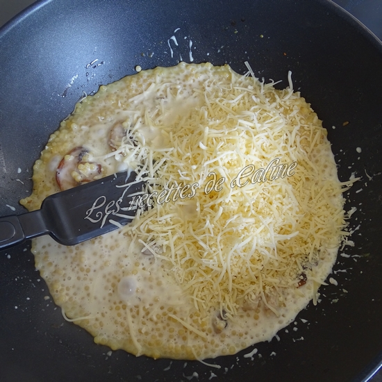 5 min avant la fin de la cuisson, ajoutez 60 g de parmesan(N’ayant pas eu de parmesan sur le drive, j’ai utilisé de l’emmental râpé c’était tout aussi bon), bien mélanger.