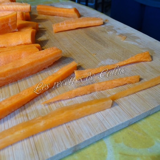 Pour être sur que les carottes soient cuites, je les ai précuit dans une eau bouillante salé pendant 25 à 30 min, goûtez-en un morceau avant de les égoutter