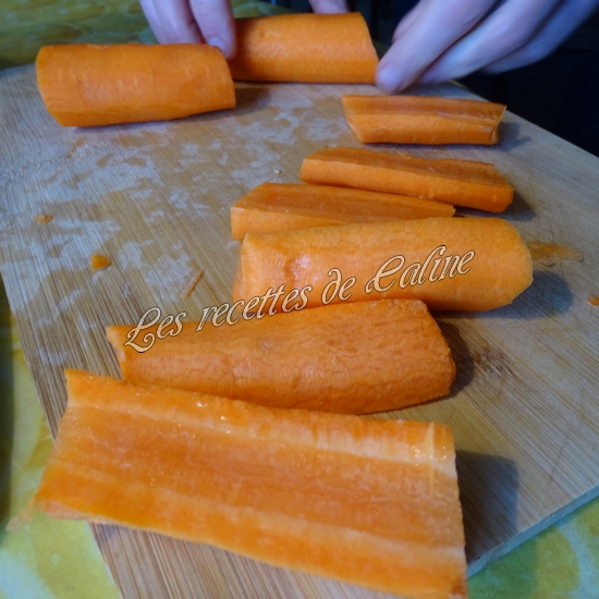 Pour être sur que les carottes soient cuites, je les ai précuit dans une eau bouillante salé pendant 25 à 30 min, goûtez-en un morceau avant de les égoutter
