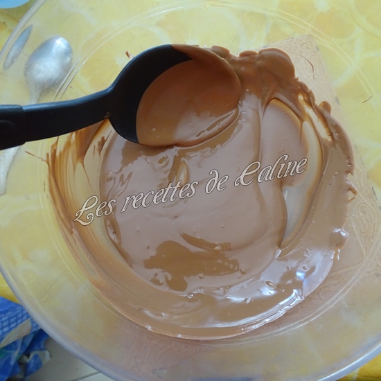 Faites fondre le chocolat au bain marie. Lorsque le chocolat est bien