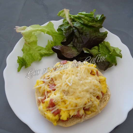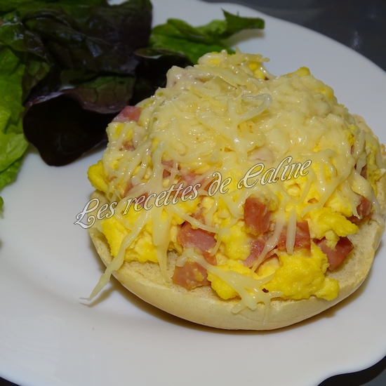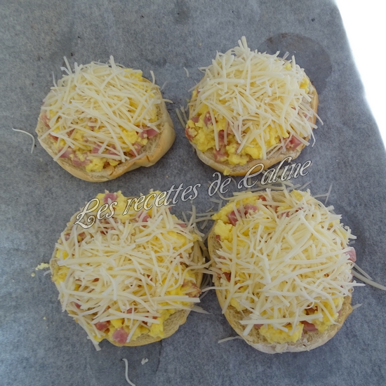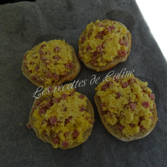 Déposez les moitiés de bagels sur la plaque et garnir de la préparation aux oeufs