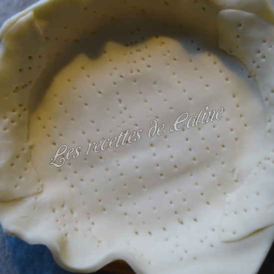 Etalez la pâte dans un moule à tarte et piquez-la avec une fourchette.