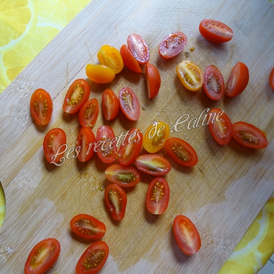 Lavez les tomates et coupez-les en quartiers (si tomates cerises, coupez-les en 2)