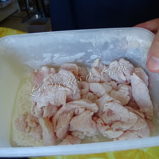 Coupez les blancs de poulet en fines lamelles puis farinez-les.