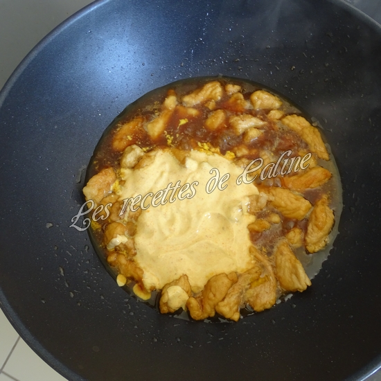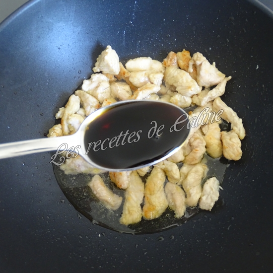 Ajoutez un demi verre d’eau et la sauce soja puis laissez mijoter environ 10 min.