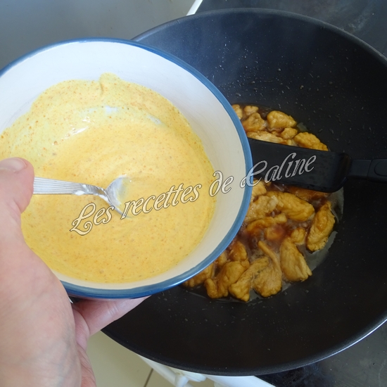 Dans un bol mélangez le yaourt et le curcuma puis versez-le sur le poulet, salez, poivre puis laissez mijoter encore 10 min.