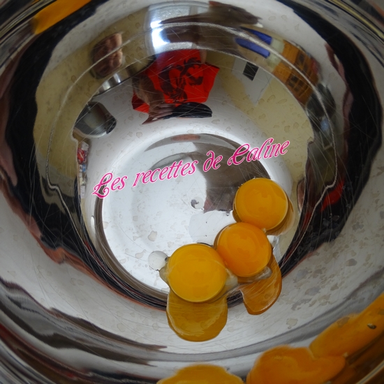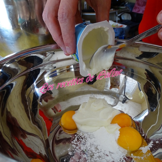 Battre les 3 jaunes avec 100 g de fromage frais et 1 cuil à café de levure chimique.