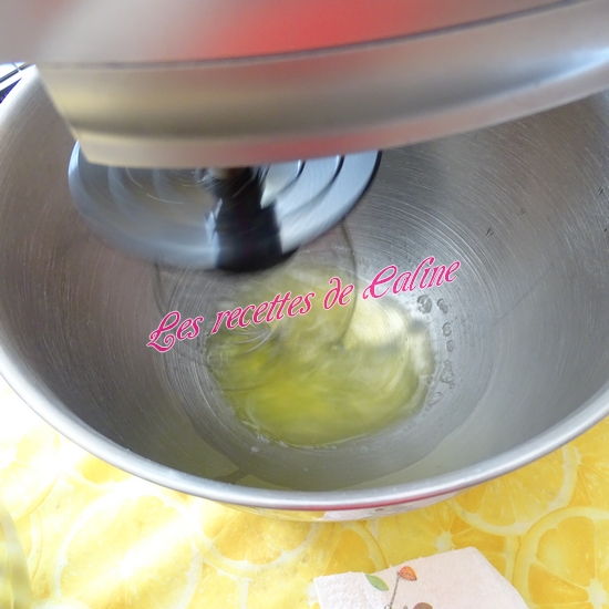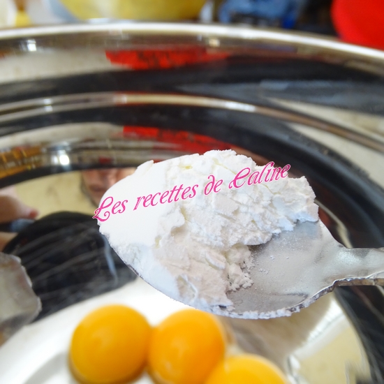 Battre les 3 jaunes avec 100 g de fromage frais et 1 cuil à café de levure chimique.