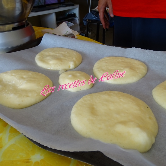 Déposez des disques de pâte d’environ 10 cm de diamètre.