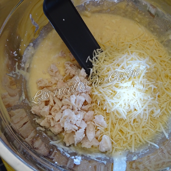Ajoutez l’emmental râpé et le blanc de poulet.