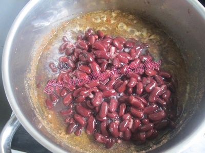 Ajouter la boîte de haricots rouge et la moitié du jus des haricots.