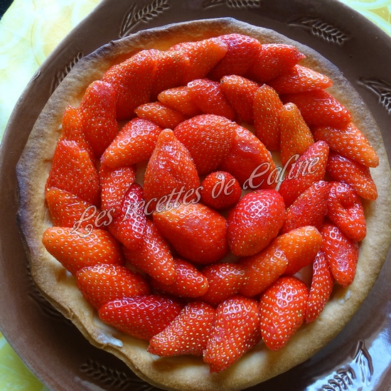 Préparez les fraises : Lavez-les, équeutez-les et coupez-les en deux en essayant de les calibrer afin d’avoir une tarte régulière. Une fois les fraises prêtes, passez au montage