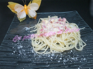 Lorsque la pancetta à légèrement coloré, ajoutez 350 g de crème et portez à ébullition pendant 2 min. Salez légèrement et poivrez généreusement. Retirez la poêle du feu. Mélangez les jaunes d’oeufs , puis les verser dans la poêle. Salez, poivrez. Ajoutez le parmesan râpée et bien remuez.