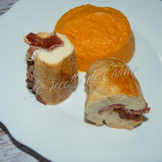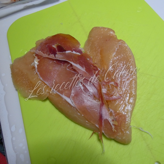 Déposez au centre de chaque escalope de poulet de cette farce à l’italienne.
