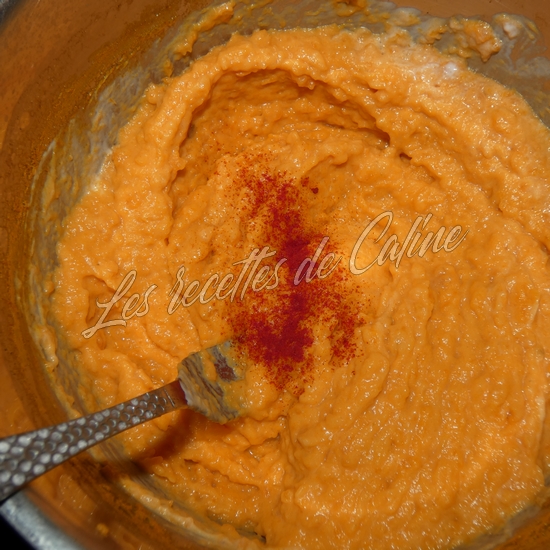 Assaisonnez-la : pistils de safran, ajoutez 1 à 2 cuil à soupe de crème fraîche épaisse pour lui apporter de l’onctuosité. Réservez la au chaud et veillant à ce qu’elle ne se dessèche pas.