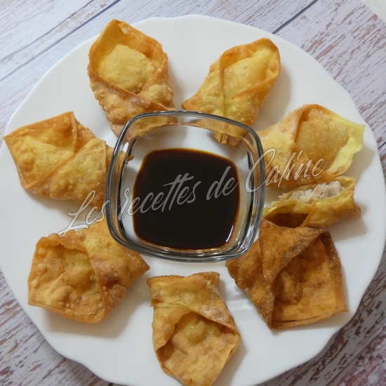 Disposez les wontons sur un plateau et servez chaud avec la sauce de votre choix