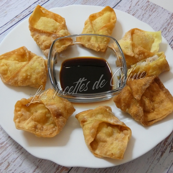 Disposez les wontons sur un plateau et servez chaud avec la sauce de votre choix