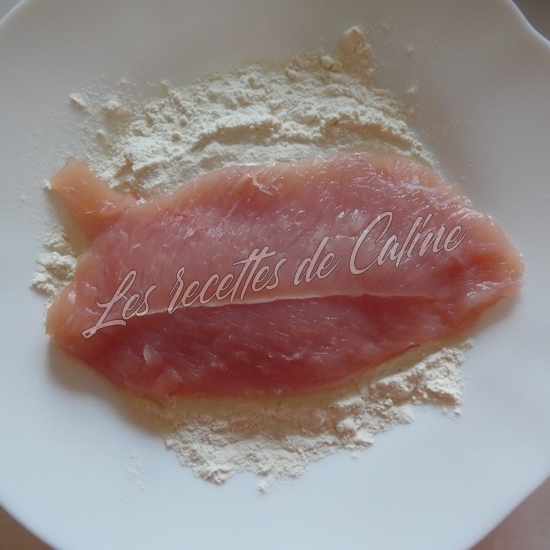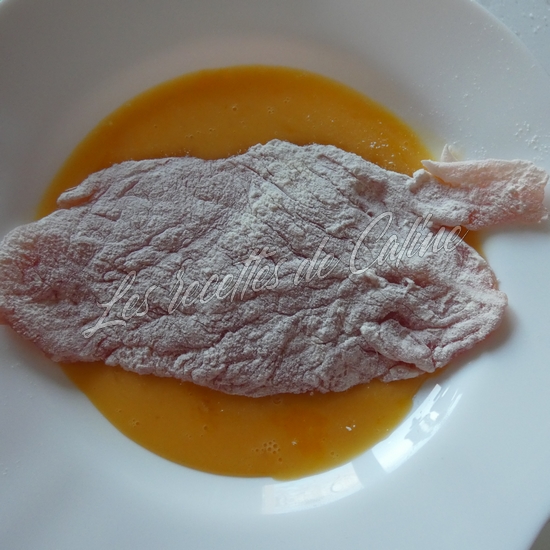 Trempez successivement chaque escalope, sur ses deux faces, dans la farine, puis l’œuf et enfin la poudre de biscotte.