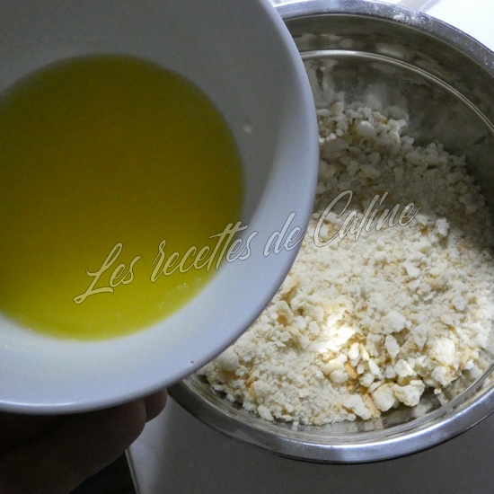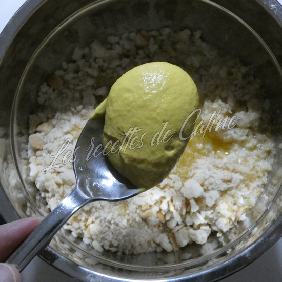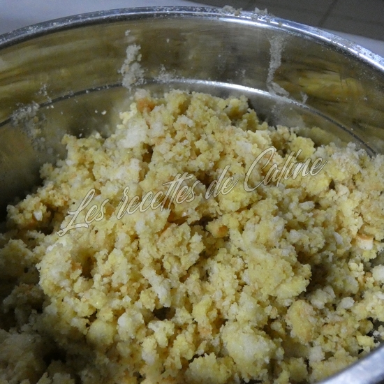 Dans un saladier, mélangez les miettes de pain, le beurre fondu et la