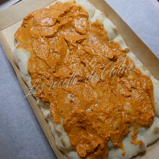 Déposez la pâte a pinsa sur une plaque de cuisson (pour certaine pâte a pinsa il faut les laisser sur la barquette comme sur ma photo