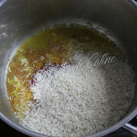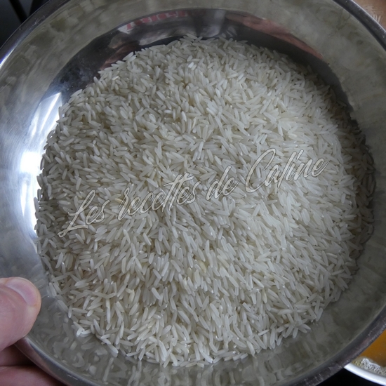 Dans un récipient, mélangez le cube de bouillon de volaille à de l’eau chaude (comptez 150 ml d’eau par personne, voir un peu plus car le riz boit beaucoup).