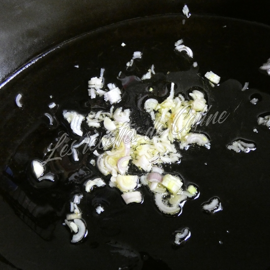 Faites chauffer l’huile d’olive dans une cocotte et faites y revenir l’échalote 5 min à feu doux.